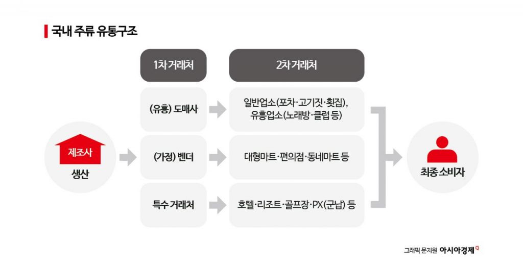 하이트진로가 생산한 제품은 1차 거래처(도매사·벤더·특수거래처)와 2차 거래처(일반업소·대형마트·호텔 등)를 거쳐 최종 소비자에게 전달이 된다. 김 상무는 "1차 거래처와의 도매 영업에선 주문 및 출고, 재고 관리, 대금 회수, 계약 업소 관리 파트너십 관리 등이 이뤄지고, 2차 거래처와의 특판영업에선 제품 사입과 진열률 개선, 거래처 개척, 홍보물 부착 등 소비자 관리에도 힘쓰고 있다"며 "1차·2차 거래처 그리고 소비자 모두 사람과 사람 간의 만남으로 이루어지기 때문에 사람들의 마음을 움직이는 것이 곧 영업"이라고 설명했다.