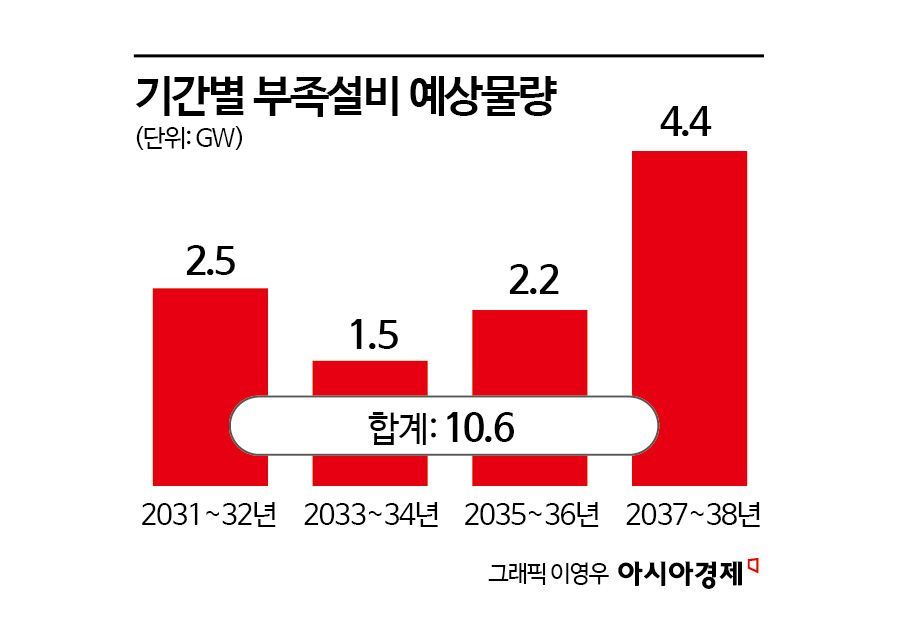 실무안은 연도별 확정설비와 기간별 설비예비율 감안 시 신규 설비는 2031년부터 필요할 것으로 예상하고 전원별 건설기간과 미래 기술여건 등을 고려해 기간별 신규건설 수요를 도출했다. 기간별로는 ▲2031~32년 2.5GW ▲2033~34년 1.5GW ▲2035~36년 2.2GW ▲2037~38년 4.4GW 등의 추가 설비가 필요하다.
