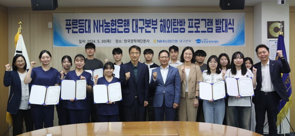 전경수 NH농협은행 대구본부 본부장은 “한국장학재단과 함께 푸른등대 기부장학사업을 통해 대구와 경북 대학생에게 해외탐방의 기회를 제공할 수 있어 뜻깊다”라며 “NH농협은행 대구본부는 앞으로도 가치 있는 나눔 활동을 통해 다양한 분야의 우수 인재 양성에 적극 기여하겠다”고 말했다.