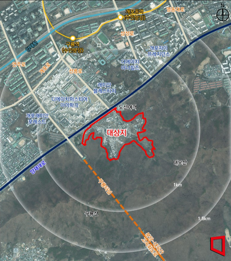 구룡마을은 강남구 개포동 567-1번지 일대 대모산 아래에 형성된 판자촌으로 무허가 건축물들이 밀집해있다. 면적은 26만7466㎡로 축구장 40개 면적과 맞먹는다. 2016년 도시계획위원회 심의를 거쳐 도시개발구역 지정과 개발계획이 수립됐다. 2011년부터 오세훈 시장이 공공 주도 개발 계획 등을 내놓았으나 보상방식을 놓고 지자체와 주민들이 갈등을 벌이면서 오랫동안 개발이 지체된 곳이다.