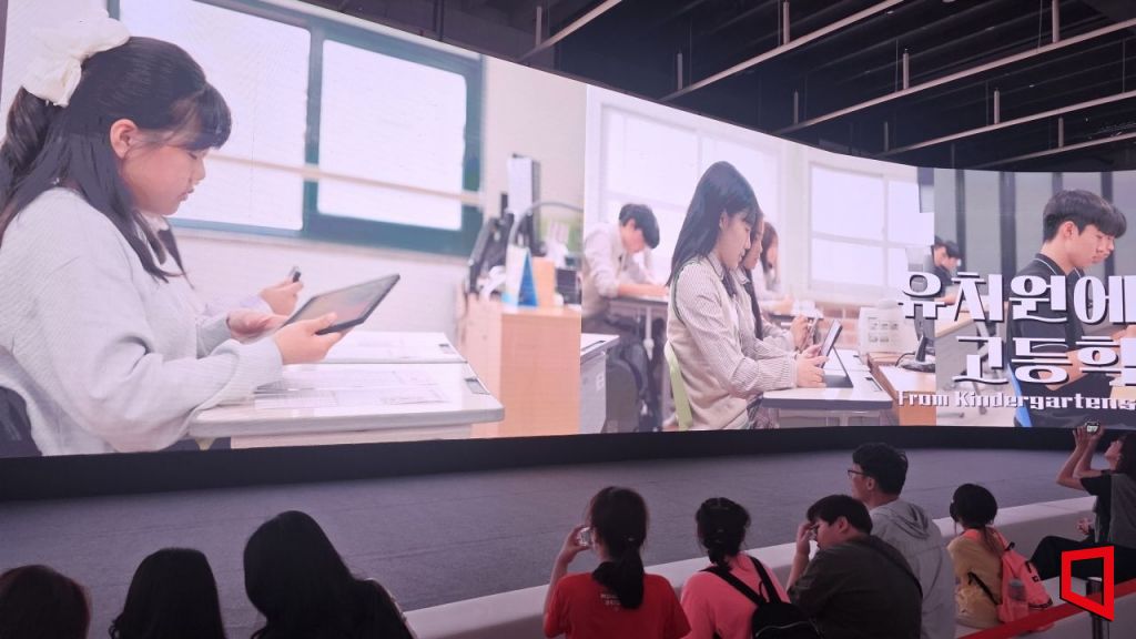 개막 후 이틀 동안 3500여명 이상이 다녀간 이곳은 미래교육의 방향을 38.5m×6m의 대형 LED 모니터를 통해 10분 정도의 영상으로 보여주고 있다.