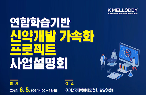 한국제약바이오협회 K-멜로디사업단은 다음 달 5일 제약바이오협회 강당에서 ‘연합학습 기반 신약 개발 가속화 프로젝트 사업설명회’를 개최한다고 31일 밝혔다.