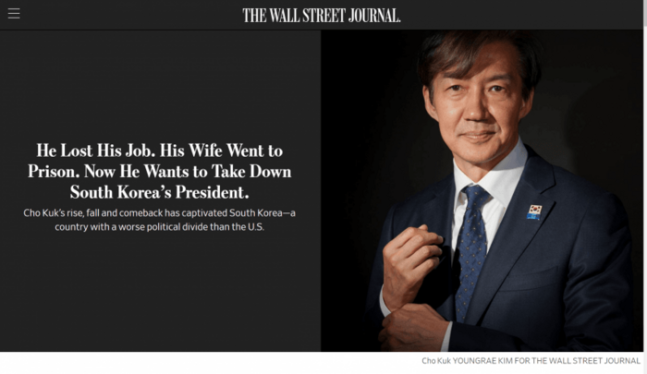 덧붙여 WSJ는 조 대표의 이름 조국이 '조국'(Motherland)으로 번역된다는 점을 소개하기도 했다.
