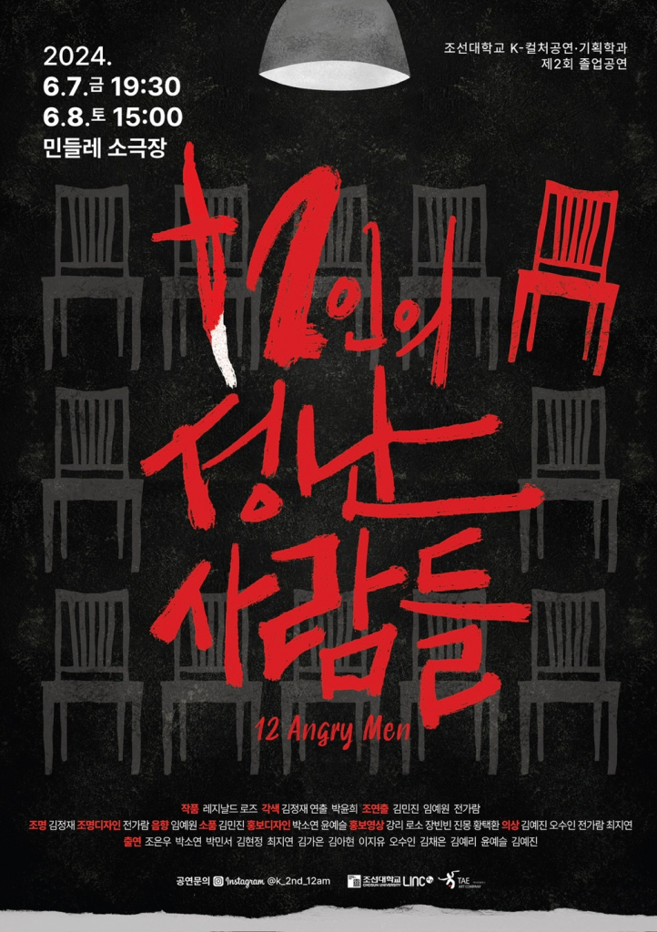 조선대학교 K-컬처공연·기획학과는 박윤희 교수의 지도 아래 졸업공연 '12인의 성난 사람들'을 선보인다고 밝혔다.