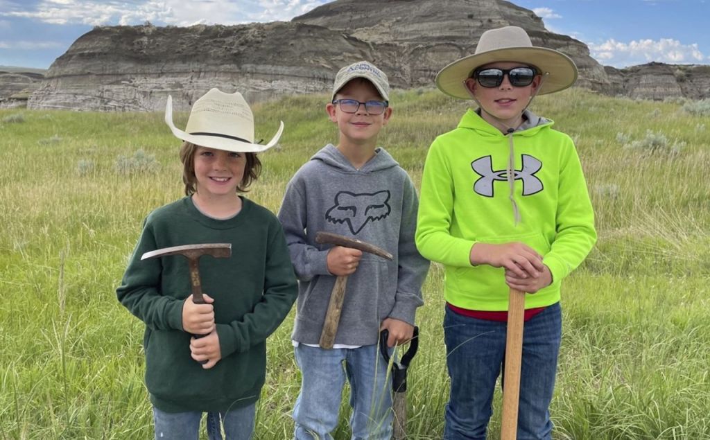 수천만년 전 티라노사우르스 화석을 발견한 어린이 3인방 리엄(7)·제신(10) 피셔 형제와 사촌 케이든 메드슨(9). [이미지출처=AP연합뉴스]