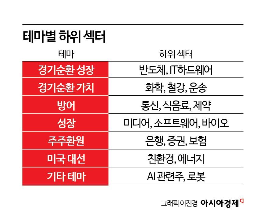 증권가에선 지난달에 이어 당분간은 테마별로 매수세가 이동할 것으로 예상했다. 이렇게 빠른 손바뀜이 일어나는 시장에서도 지수 대비 초과 수익을 노리는 투자자라면 단기 매매로 대응하는 방법이 유효하다는 분석이 나온다. 이경민 대신증권 연구원은 "제한된 범위에서 코스피가 반등할 수 있다는 가능성을 열어두고 트레이딩으로 대응이 가능하다"며 "투자자들은 곧 있을 미국 연방공개시장위원회(FOMC)와 소비자물가지수(CPI) 결과 등 시장 흐름에 따라 대응 전략을 세워야 할 것"이라고 말했다. 이어 "원·달러 환율 고점에서 유입된 일부 자금이 순환매 동력으로 작용할 수 있다"며 "당분간 소외주에 주목하되, 만약 채권금리가 하향 안정화되면 다음 순환매 주역은 이차전지가 될 가능성도 있다"고 분석했다.