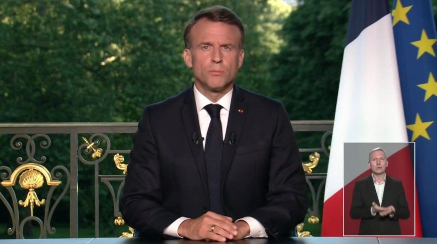 마크롱 대통령은 이날 유럽의회 선거 출구조사 결과가 발표된 직후 대국민 연설에서 "여러분에게 의회의 미래에 대한 선택권을 돌려주기로 결정했다"면서 "오늘 저녁 의회를 해산한다"고 밝혔다. 그는 "하원 1차 선거는 오는 30일, 2차 선거는 내달 7일 개최한다"면서 "심각하고 중대한 결정"이라고 강조했다. 이어 "무엇보다도 신뢰에 따른 행동"이라며 "자신과 미래 세대를 위해 최선의 선택을 할 수 있는 프랑스 국민들의 능력을 신뢰한다"고 덧붙였다.