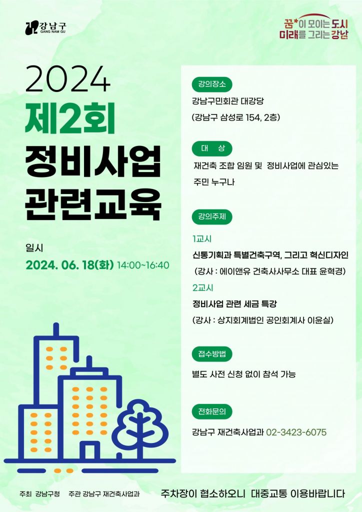 강남구(구청장 조성명)가 18일 오후 2~4시 강남구민회관 대강당에서 주민 300여명을 대상으로 재건축 정비사업 아카데미를 개최한다.