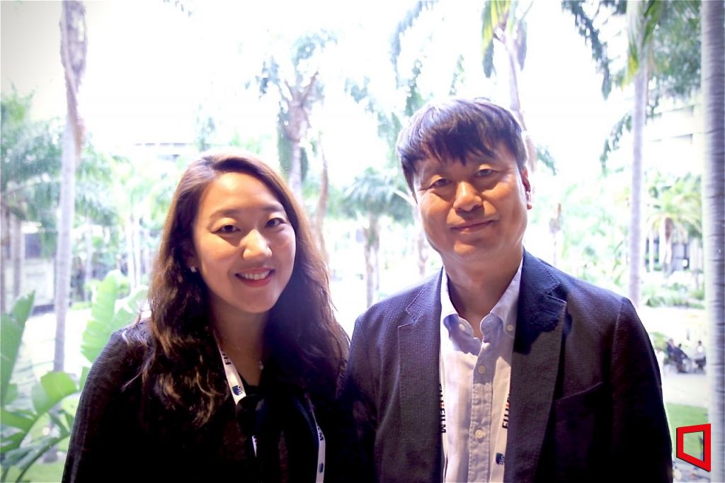 윤나리 지아이이노베이션 임상중개전략부문장과 장명호 최고전략책임자(CSO)가 2024 바이오국제박람회(바이오USA)가 열린 미국 캘리포니아주 샌디에이고에서 아시아경제와 인터뷰하고 있다.[사진=이춘희 기자]