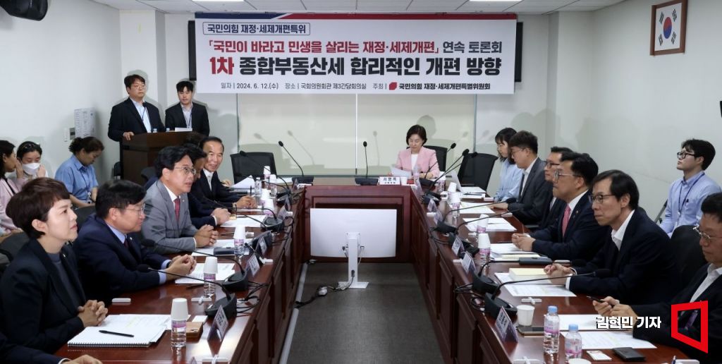 송언석 국민의힘 재정·세제개편특위 위원장이 12일 국회에서 열린 재정·세제개편특별위원회 1차 토론회 '1차 종합부동산세 합리적인 개편 방향'에서 발언하고 있다. 대통령실이 지난달 말 종부세를 포함한 세제 개편 방침을 밝힌 뒤 당정이 후속 논의를 위해 한자리에 모이는 것은 이번이 처음이다. 사진=김현민 기자 kimhyun81@