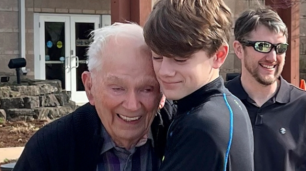 미국 최고령 장기기증자가 된 한국전 참전용사 앨런 오빌(맨 왼쪽)이 생전에 증손자를 안고 있는 모습. [이미지출처=AP연합뉴스]