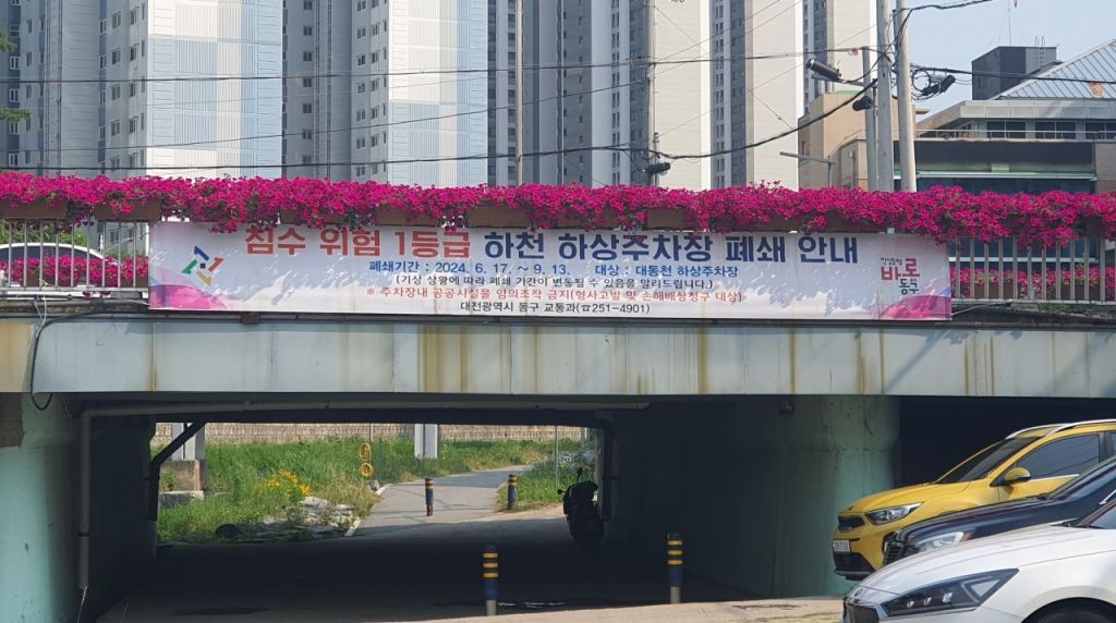 대전 동구는 여름철 집중호우에 대비해 하상 주차장 4곳을 17일부터 잠정 폐쇄한다고 밝혔다.