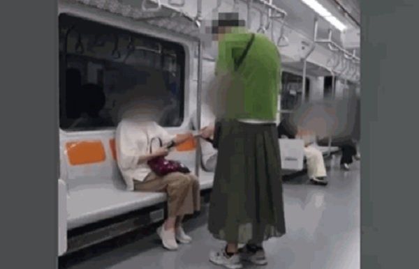 A씨가 제공한 영상을 보면, 녹색 치마를 입고 중년 여성의 앞에 선 거구의 남성이 보인다. 손잡이가 머리에 닿는 것으로 보아, 그의 키는 180㎝ 정도로 추측된다. 해당 남성은 여성의 앞에서 한참이나 고성을 지르고, 허공에 손을 휘두르며 위협한다. 치마 밑으로 철사로 추정되는 물체를 떨어뜨리기도 한다. 이에 겁에 질린 여성이 조심스럽게 현금을 내밀자, 남성은 여성의 손에 들려진 현금을 빠르게 빼앗고는 다른 여성의 앞으로 다가선다.