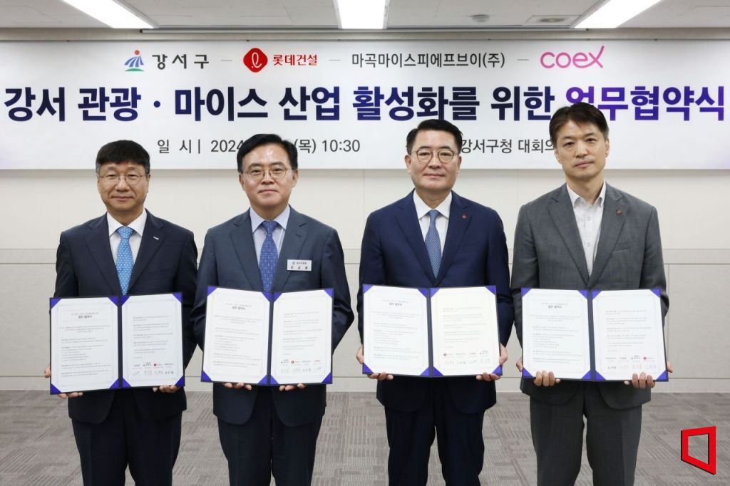 롯데건설이 마곡 르웨스트 준공을 앞두고 강서구, 코엑스 등과 관광 마이스(MICE) 산업 활성화를 위한 업무협약(MOU)을 체결했다.