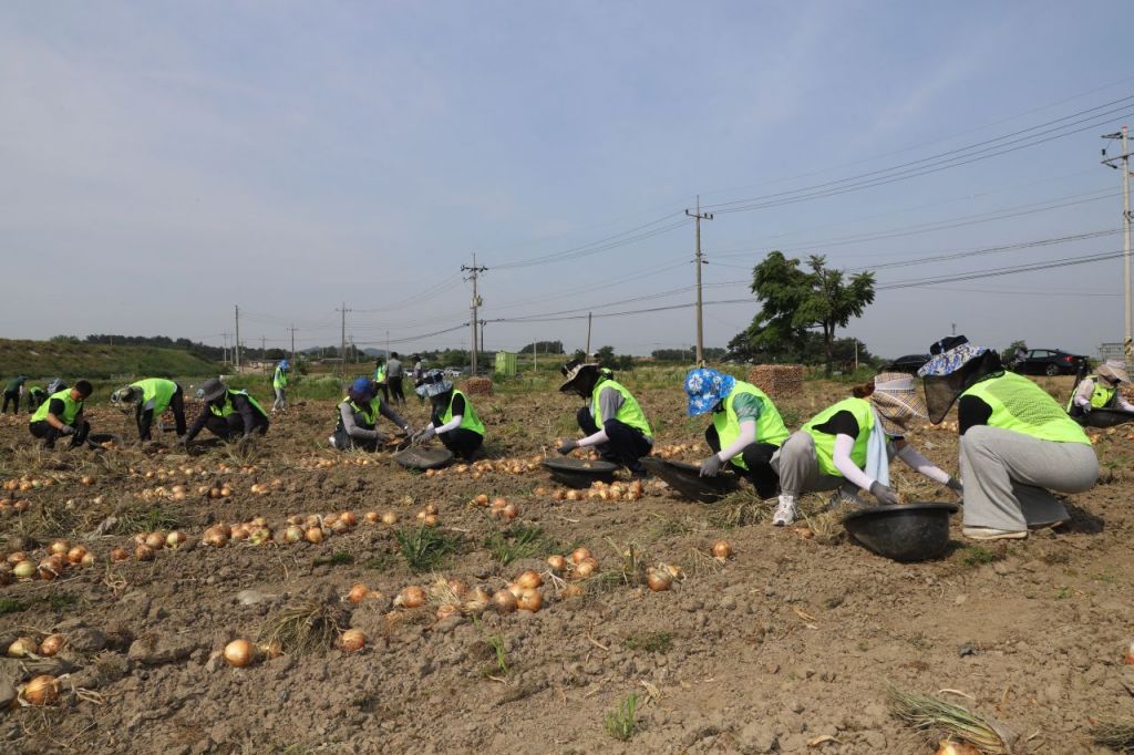 농협 임직원과 공공기관, 봉사단체 등 900여명은 14일 16개 시군 농가에서 양파와 마늘 등 농산물 수확에 힘을 보탰다.