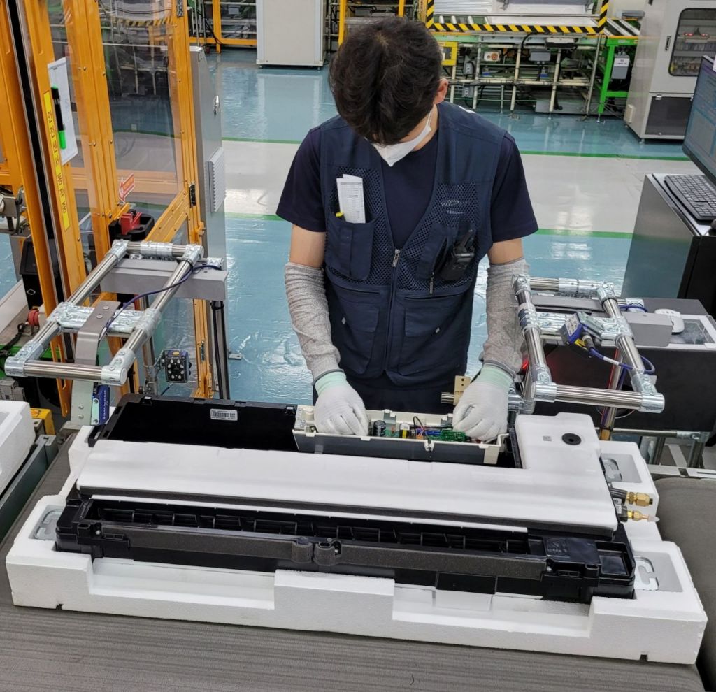 광주광역시 광산구 하남산단 6번로에 위치한 삼성전자 광주사업장에서 직원들이 '시스템 에어컨'을 생산하는 모습. [사진제공=삼성전자]