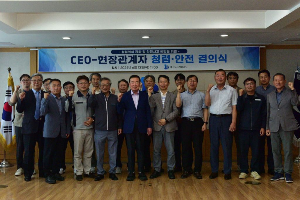 대구도시개발공사(사장 정명섭)는 공사에서 추진중인 주요 4개 건설 현장 책임건설 사업관리인과 현장 소장 대리인, 부서장들이 참석한 가운데 ‘부패 척결 청렴 의식 고양 및 안전 결의식’을 개최했다고 16일 밝혔다.