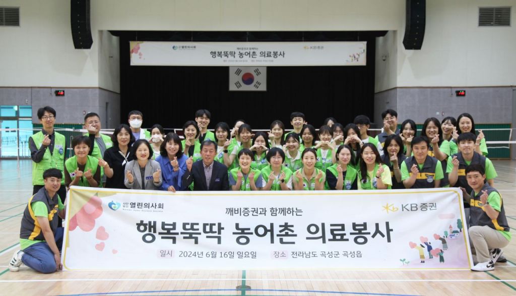 이번 행복뚝딱 농어촌 의료봉사는 지난 16일 전라남도 곡성군 곡성읍 지역에서 KB증권 임직원과 열린의사회 자원봉사 의료진 및 관계자 총 40여명이 함께 진행했다.
