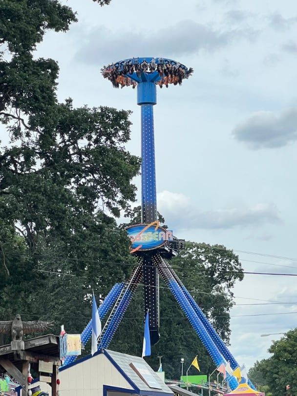 미국 오리건주 포틀랜드의 오스크 파크에서 '앳모스피어'(AtmosFEAR)가 공중에서 작동을 멈춰 탑승객들이 상공에서 거꾸로 매달리게된 사고가 발생했다. [이미지출처=틱톡 캡처]