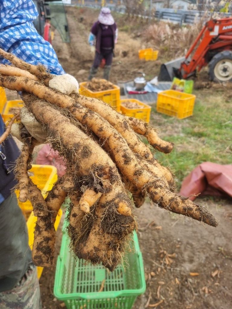 지난해 장성군 농업인이 갓 수확한 지황을 들어 보이고 있다.[사진제공=장성군]