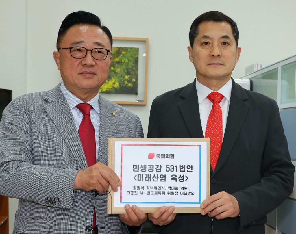 박대출 국민의힘 의원과 AI반도체특위 위원장인 고동진 의원은 이날 오전 국회 의안과에 미래산업 육성과 관련된 법안 4건을 제출했다. 앞서 국민의힘은 지난달 31일 22대 국회의원 워크숍에서 민생과 관련된 5개 분야 31개 법안을 마련한 바 있다.