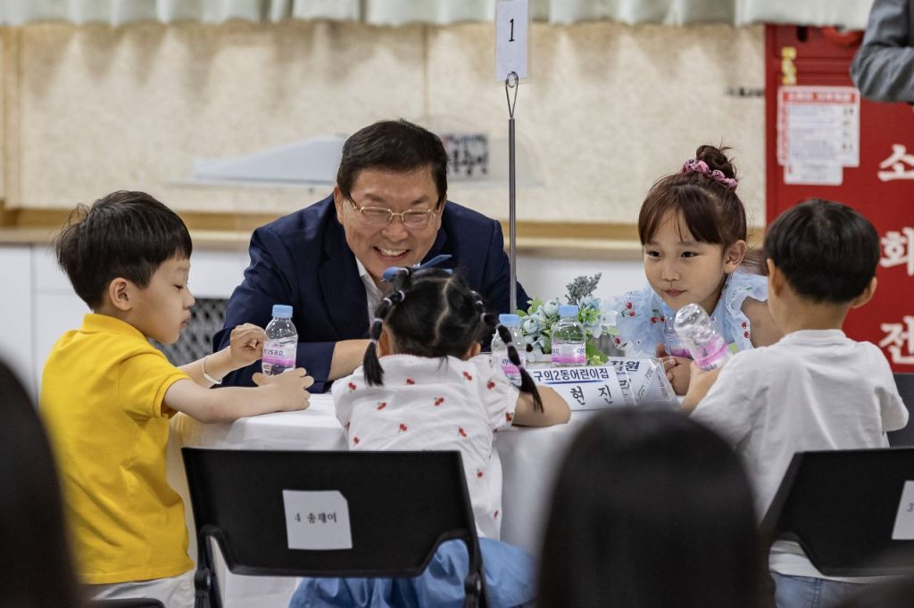 김경호 광진구청장(맨 왼쪽)과 어린이 수상자들 기념 사진