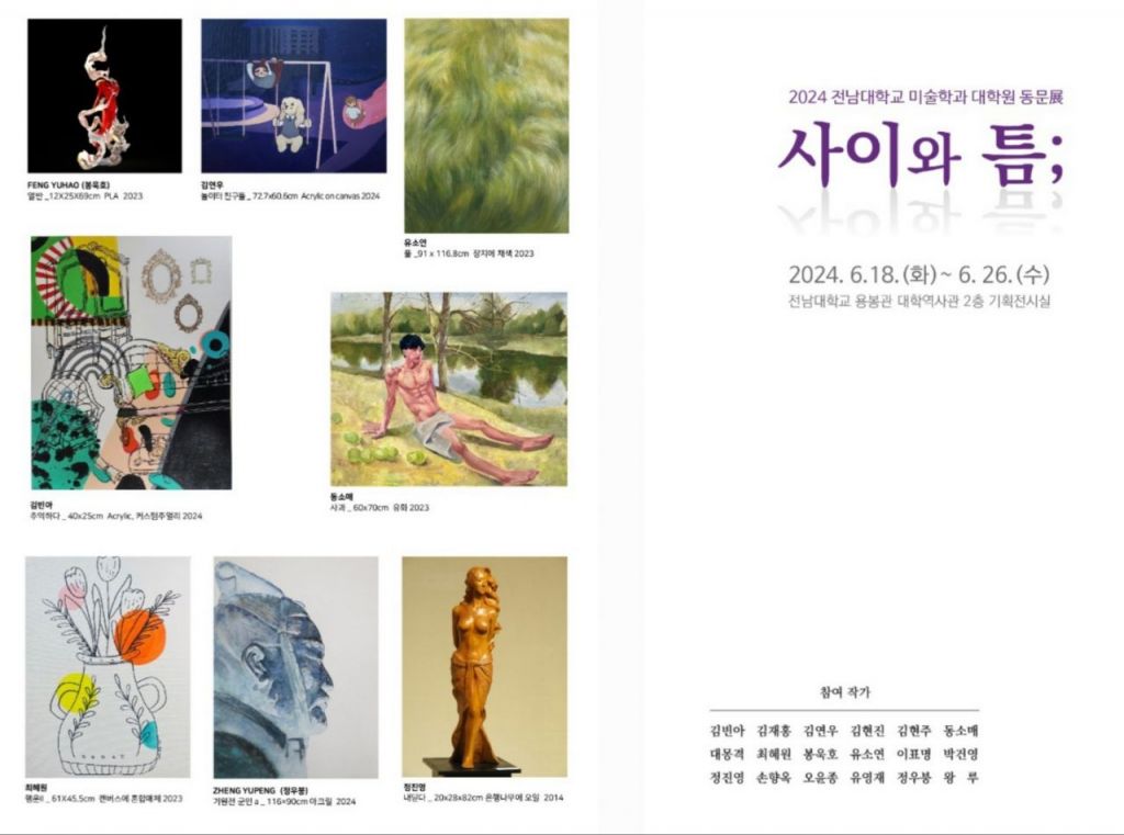 전남대학교 예술학과 동문들이 개최하는 작품 전시전 '사이와 틈' 포스터.