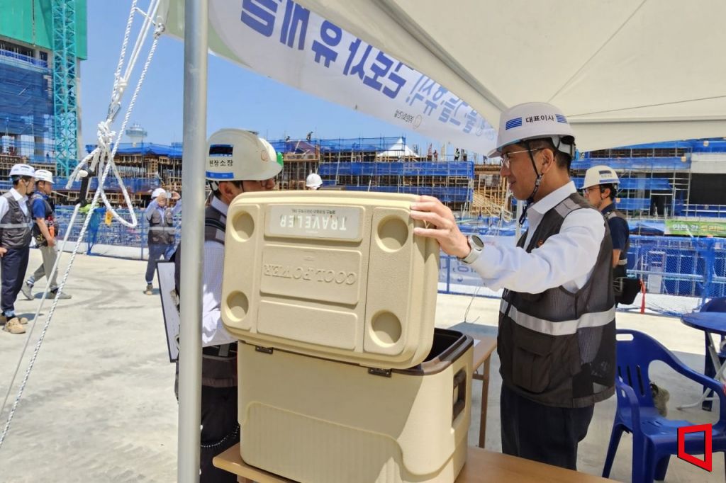 현장 안전점검에서는 건설근로자 혹서기 온열질환 예방을 위해 가장 중요한 물·그늘·휴식 3대 수칙 준비 상황을 중점적으로 살폈다.