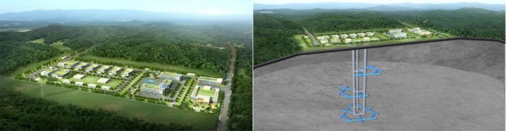 연구용 지하연구시설의 지상(오른쪽)·지하시설 사업구상안.