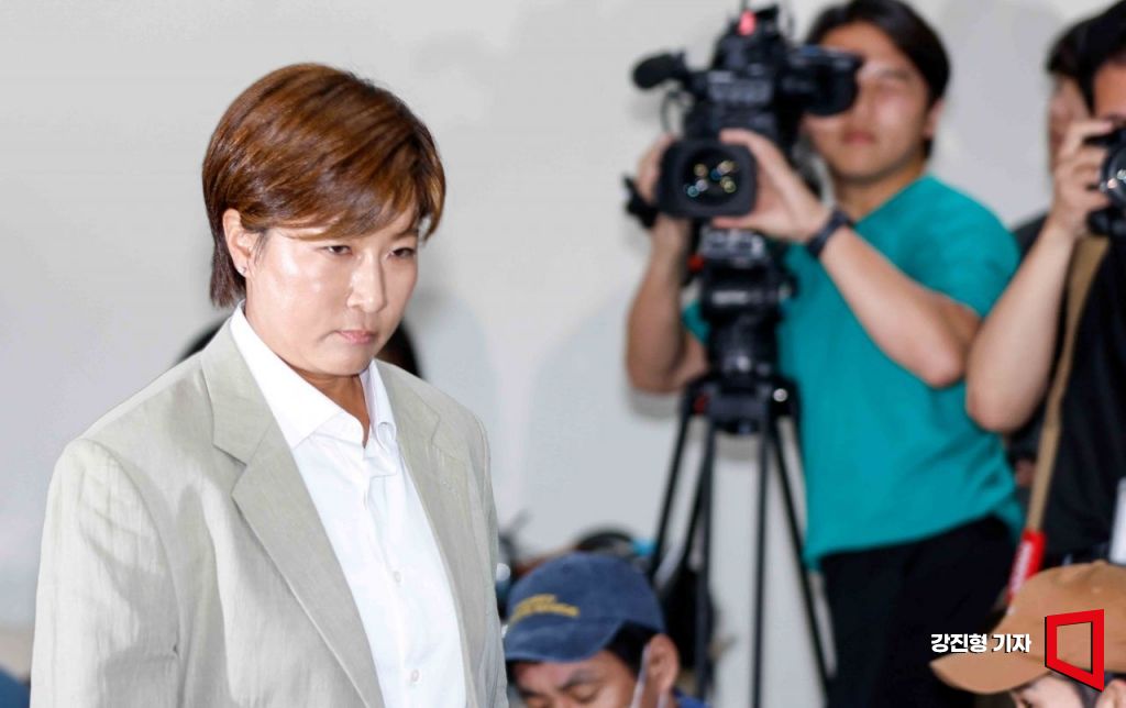 골프선수 출신 방송인 박세리가 18일 서울 강남구 스페이스쉐어 삼성코엑스센터에서 부친의 사문서위조 혐의와 관련해 입장발표하기 위해 기자회견장으로 들어서고 있다.