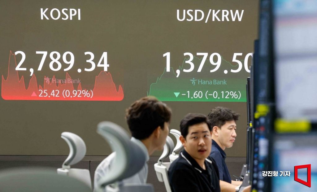코스피 지수가 전 거래일 대비 22.24포인트 상승한 2786.16에 장을 시작한 19일 서울 중구 하나은행 딜링룸에서 딜러들이 업무를 보고 있다.