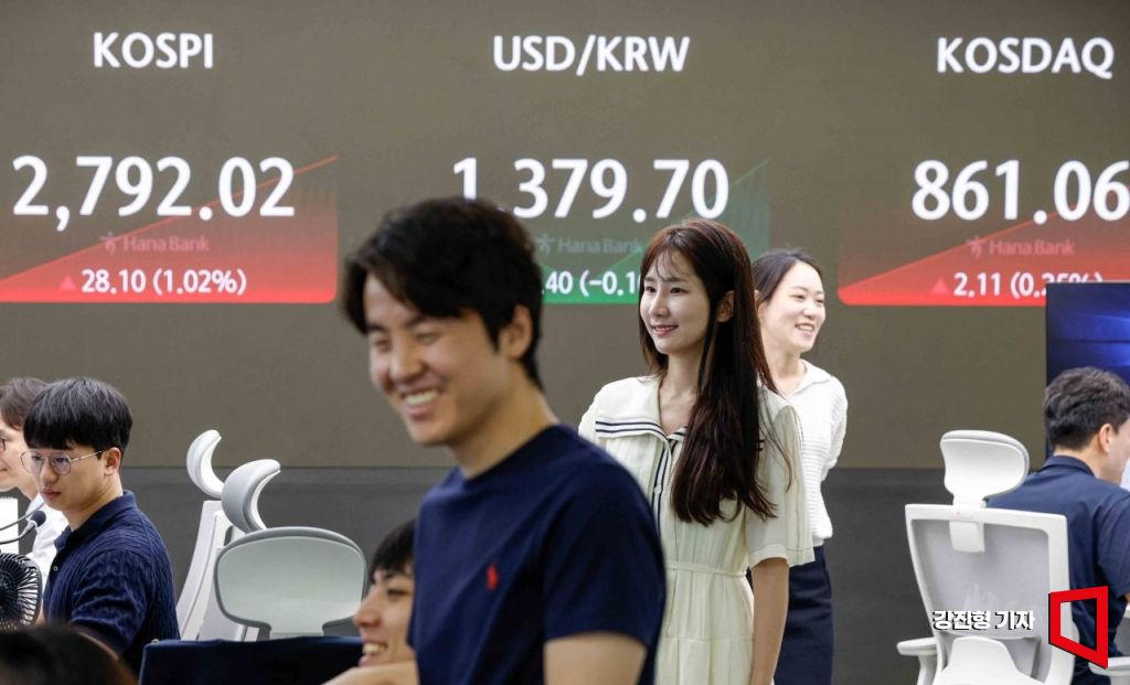 코스피 지수가 전 거래일 대비 22.24포인트 상승한 2786.16에 장을 시작한 19일 서울 중구 하나은행 딜링룸에서 딜러들이 업무를 보고 있다. 사진=강진형 기자aymsdream@