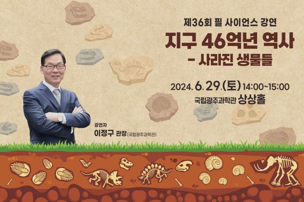 국립광주과학관이 오는 29일 청사 상상홀에서 '지구 46억년 역사: 사라진 생물들'을 주제로 제36회 필 사이언스 강연을 개최한다.