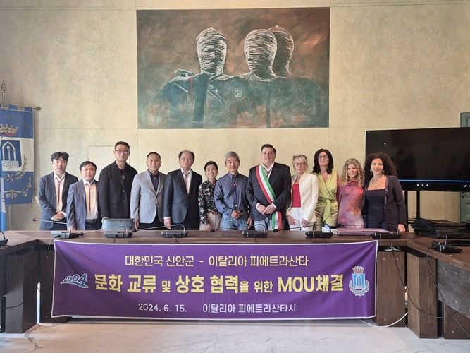 전남 신안군(군수 박우량)은 지난 15일 이탈리아 피에트라산타시와 우호 협력관계 구축과 문화교류 및 상호협력을 위한 업무협약(MOU)을 체결했다고 19일 밝혔다.