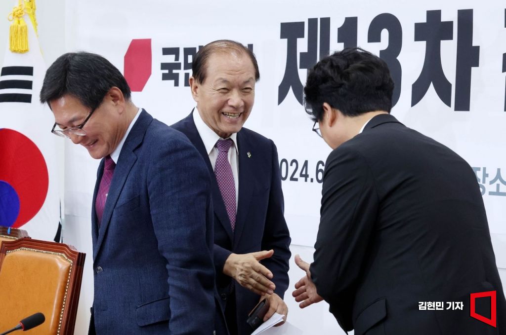 황우여 국민의힘 비상대책위원장이 19일 국회에서 열린 제13차 전국위원회에 참석하고 있다. 사진=김현민 기자 kimhyun81@