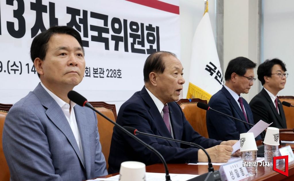 황우여 국민의힘 비상대책위원장이 19일 국회에서 열린 제13차 전국위원회에서 발언하고 있다. 사진=김현민 기자 kimhyun81@