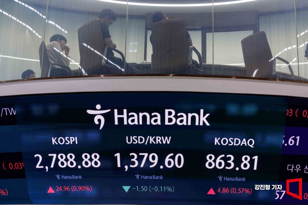 코스피 지수가 전 거래일 대비 22.24포인트 상승한 2786.16에 장을 시작한 19일 서울 중구 하나은행 딜링룸에서 딜러들이 업무를 보고 있다. 사진=강진형 기자aymsdream@