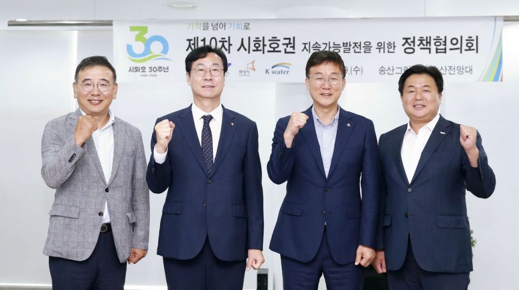 화성·안산·시흥시와 한국수자원공사(K-water) 등 4개 기관은 19일 송산그린시티 전망대에서 '제10차 시화호권 정책협의회'를 개최했다. '시화호권 정책협의회'는 시화호를 중심으로 개발과 보전이 이뤄지고 있는 화성·안산·시흥시 등 3개 자치단체와 K-water로 구성된 행정협의회다. 이날 회의에는 정명근 화성시장, 이민근 안산시장, 임병택 시흥시장, 박세훈 K-water 도시본부장이 참석했다.