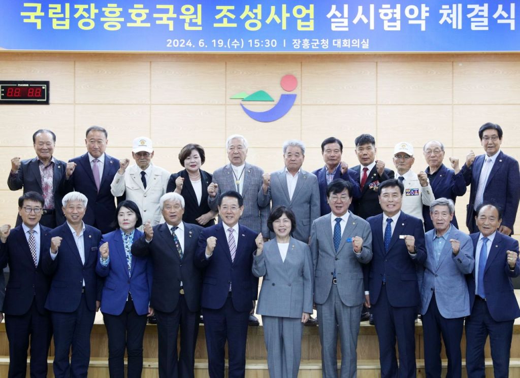 전남도는 국립장흥호국원 조성사업의 성공적 추진을 위해 19일 장흥군청에서 국가보훈부, 장흥군과 실시협약을 맺었다고 밝혔다.
