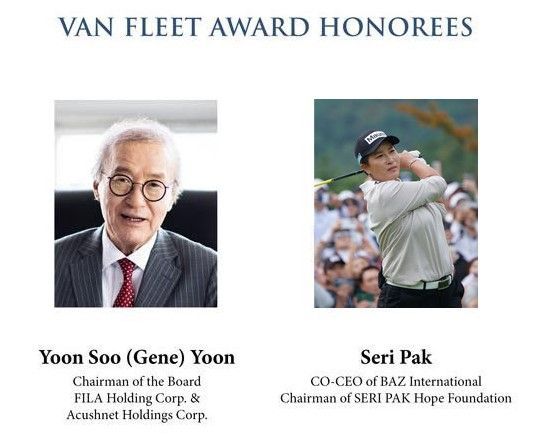 이에 따라 박 이사장은 앞서 수상자로 선정된 윤윤수 휠라홀딩스 회장과 함께 2024년 밴 플리트상을 공동으로 받게 된다. 윤 회장 역시 한미동맹재단(KUSAF)과 주한미군전우회(KDVA)를 설립하고 자문하는 데도 주도적 역할을 하는 등 한미 간 경제적 유대관계에 기여한 공로를 인정받았다.