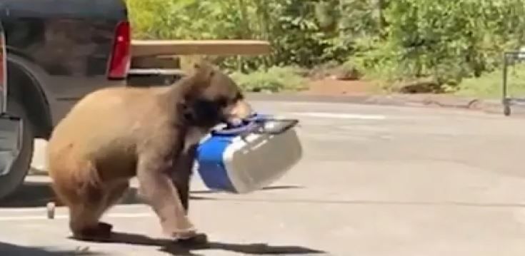 이때 배리씨는 거대한 흑곰 한 마리가 픽업트럭에 접근하는 모습을 목격했다. 그가 몰래 촬영한 영상을 보면, 흑곰은 트럭의 뒷부분에 올라타더니 파란 아이스박스를 꺼낸다. 이후 곰은 박스를 들고 어딘가로 향한다.