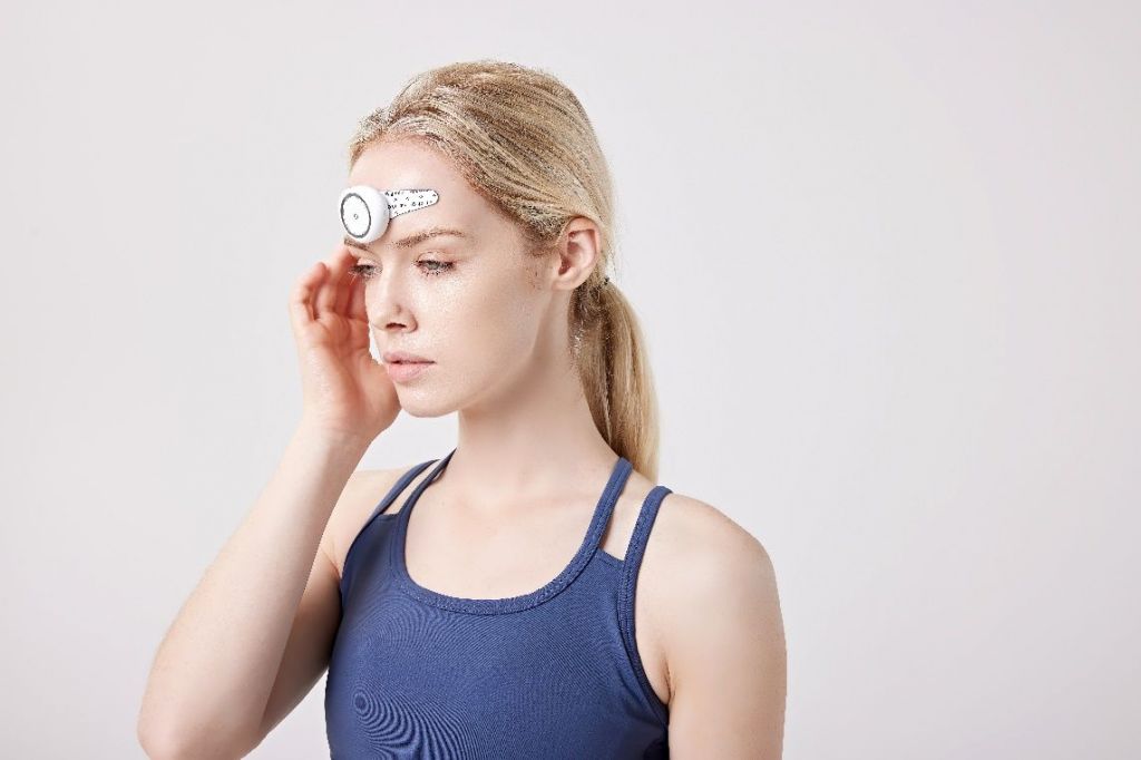 두팡은 편두통을 유발하는 이마의 삼차신경 부위에 신경전기자극(TENS)을 전달해 과활성화된 신경을 안정시켜 편두통을 완화하는 원리다.