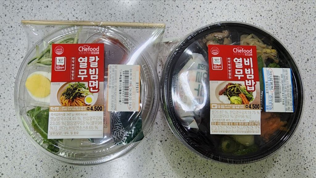 하지만 열무칼빔면은 달랐다. 칼국수면을 사용해서 소면보다 덜 불었다. 특히 열무김치가 신의 한 수였다. 열무김치 포장에 들어있는 김치국물이 면 사이로 스며들어 잘 버무리는 데 전혀 어려움이 없었다. 다만 통상 칼국수의 탱글탱글한 식감이 잘 느껴지지는 않았는데, 이는 열무의 아삭함이 충분히 커버해 줬다. 열무칼빔면의 면발이 불어나는 정도를 확인하기 위해 열무비빔밥을 먹고 난 뒤, 다시 열무칼빔면을 시식했는데 처음과 차이가 없었다.