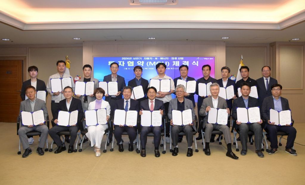 광주광역시(시장 강기정)는 20일 시청 비즈니스룸에서 자동차·인공지능(AI)·에너지·의료산업 21개 기업과 투자협약(MOU)을 체결했다고 밝혔다.
