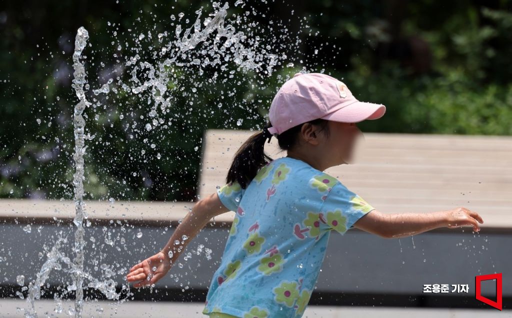 서울 경기 등 중부지방에 폭염주의보가 발효된 지난 19일 서울 낮기온이 35도까지 올라가자 광화문 광장 분수대를 찾은 아이들이 물놀이를 하며 더위를 식이고 있다. 사진=조용준 기자 jun21@