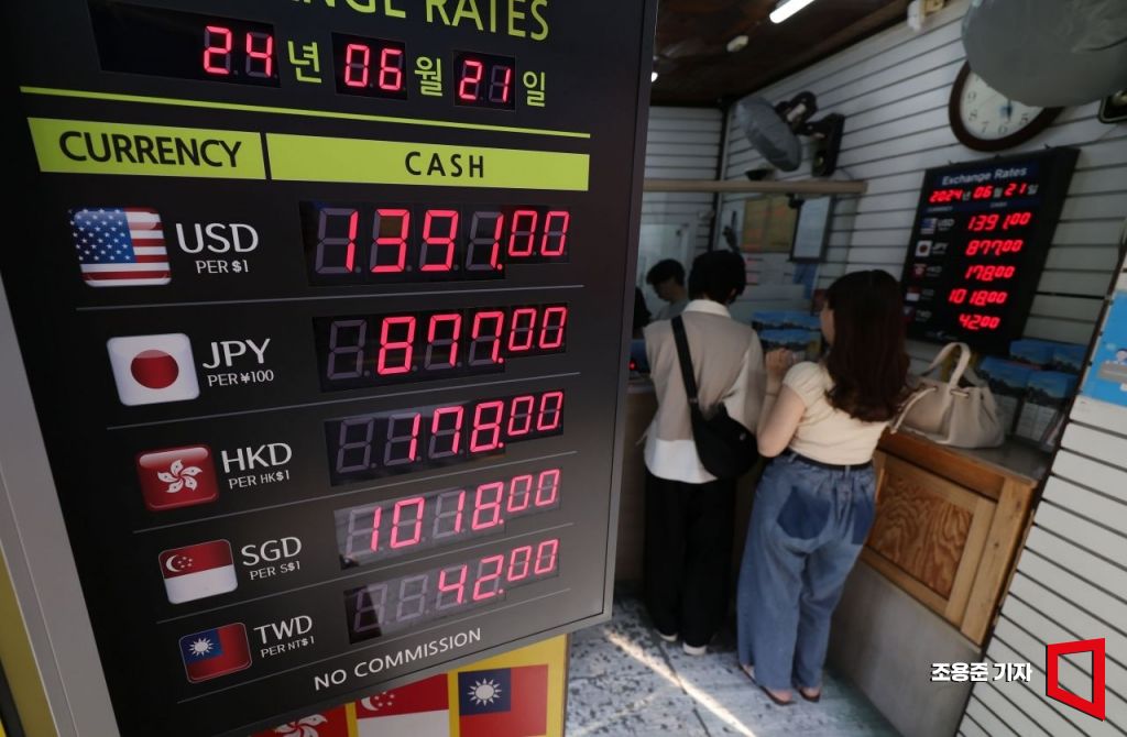 원/달러 환율이 7.4원 오른 1392.0원로 출발한 21일 서울 명동의 한 환전소에서 원/달러 환율이 1391.0원대에 거래되고 있다. 이날 지난해 하반기에 이어 올 상반기에도 미국의 환율관찰대상국에서 한국이 제외됐다. 사진=조용준 기자 jun21@