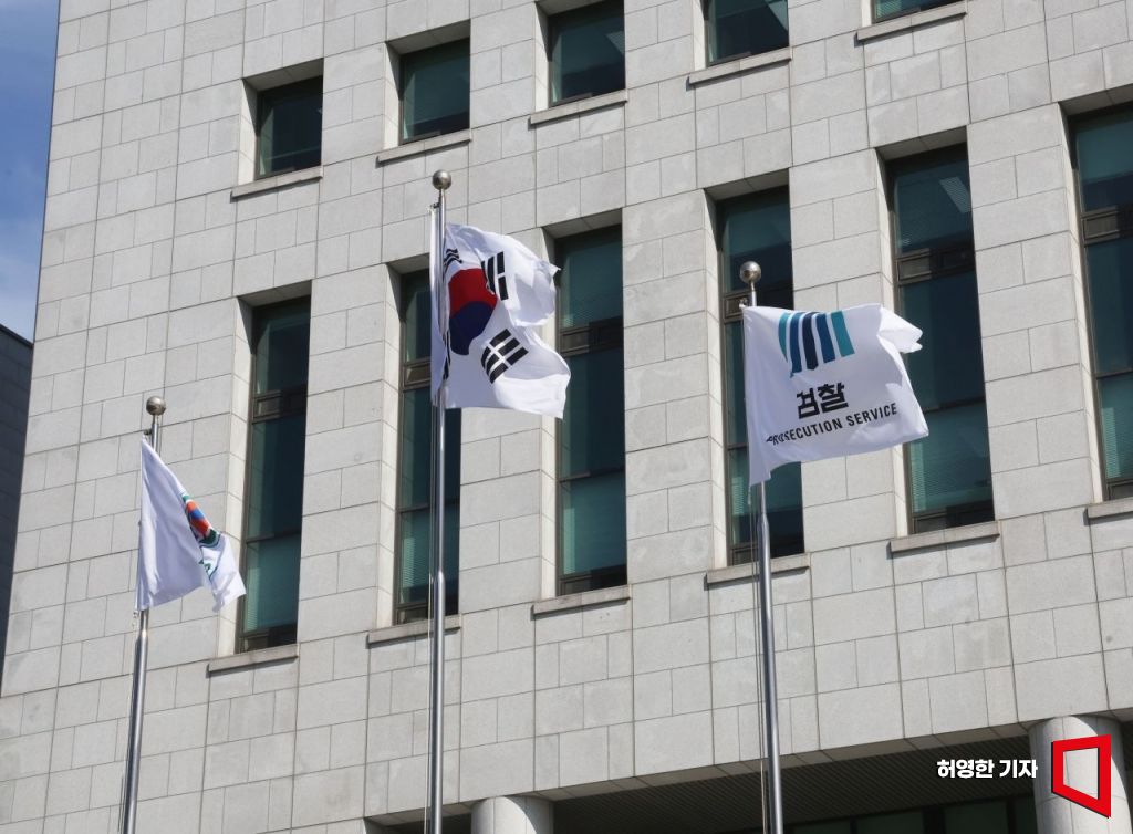 대검찰청사 앞에 걸린 태극기와 검찰 깃발이 바람에 날리고 있다. 사진=허영한 기자 younghan@
