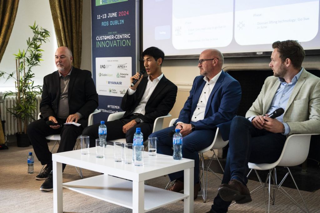지난 12일(현지시간) 아일랜드 더블린에서 열린 '수하물 혁신 협동 프로그램 공동 발족식'에서 임동민 인천국제공항공사 수하물시설팀 과장(왼쪽에서 두 번째)이 수하물 처리 혁신사업 패널 토의에 참가해 인천공항 사례를 발표하고 있다. (사진제공=인천국제공항공사)