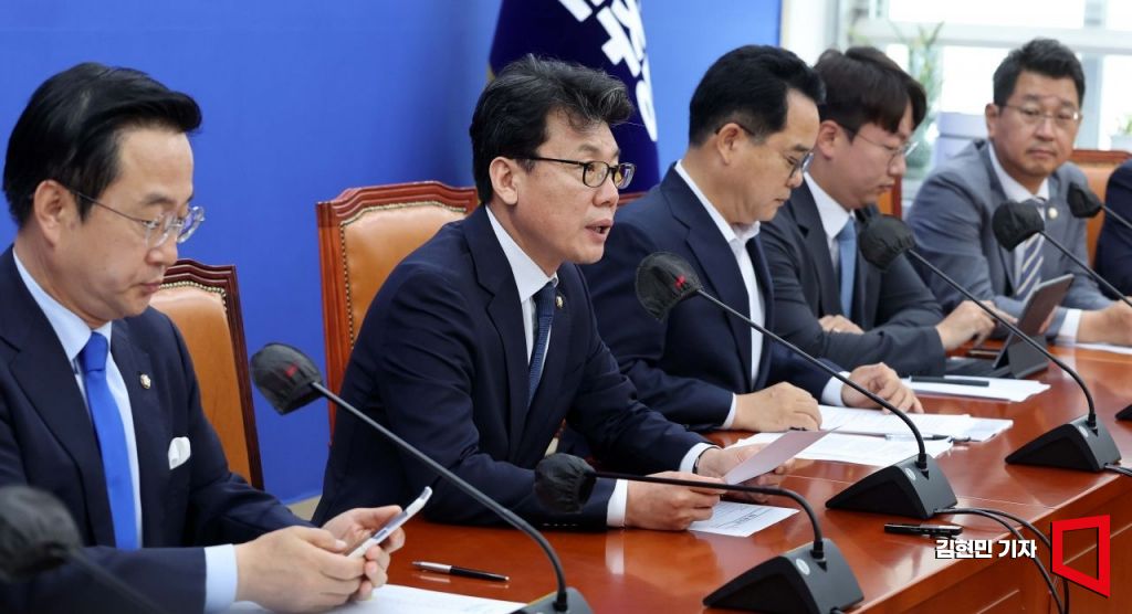 진성준 더불어민주당 정책위의장이 25일 국회에서 열린 원내대책회의에서 발언하고 있다. 사진=김현민 기자 kimhyun81@