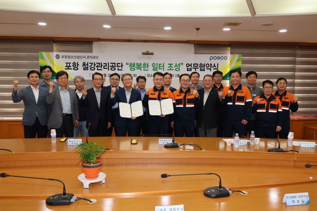 포스코 포항제철소는 25일 포항철강관리공단에서 ‘행복한 일터 조성’을 위한 업무 협약식을 가졌다.